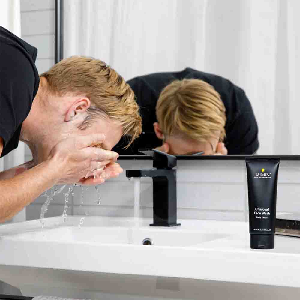 - Una crema hidratante facial diaria para hombres y un lavado facial purificante de carbón para hombres.